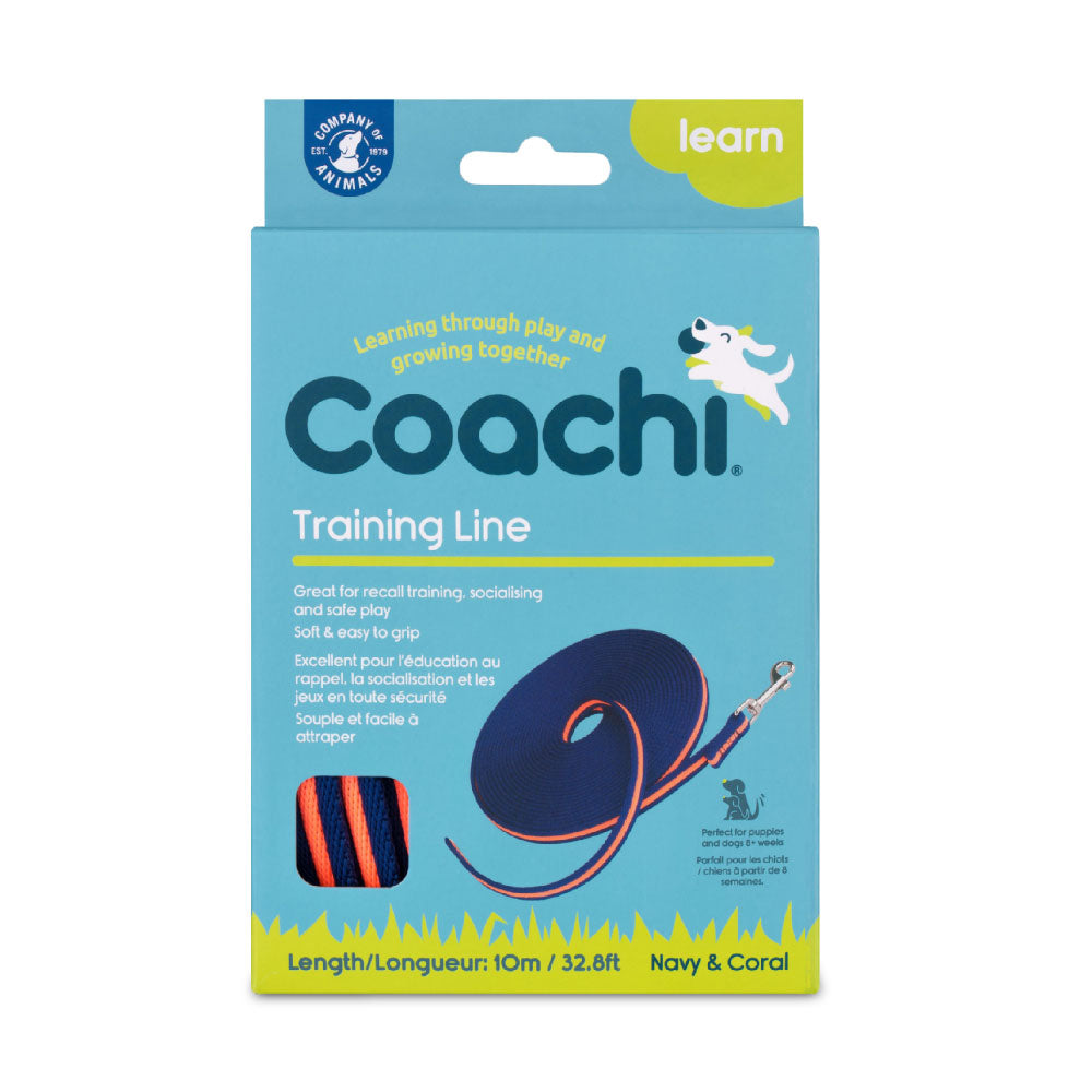 The Coachi Training Line allows you to give your dog more freedom outdoors whilst keeping control in new situations, perfect for puppies, newly acquired and nervous or aggressive dogs. An essential accessory, the training line allows you to safely practice your recall in open spaces and allows you to reinforce this command, should they try and run off! The perfect training accessory for outings in a public place, the line allows safe and controlled socialisation. The attractive padded webbing makes the Coachi Training Line comfortable to hold and easy to manage and grip in all weathers. The attractive, two-tone 10m Training Line is typically suited to larger dogs and puppies. The Coachi range was created by the experts at Company of Animals and it is designed to focus on promoting effective, humane and positive methods, making training simple and rewarding for both owners and their dogs.