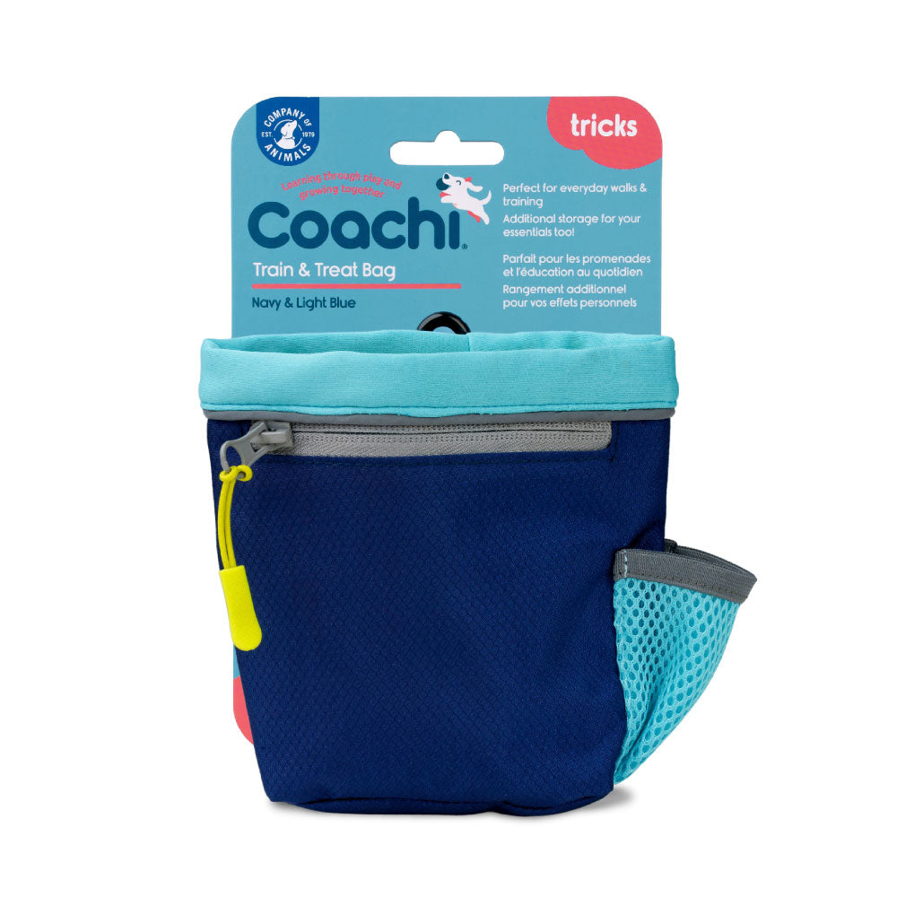 The Coachi Train & Treat Bag is a very practical treat pouch that has been designed with many useful features. This generously sized bag has easy access to keep those tasty treats to hand and an invertible liner for easy cleaning. The secure zipped front pocket and side accessory pouch are perfect to store poo bags, clickers and other valuables. It has a secure carabiner and separate belt clip for easy attachment, to either waist band, belt or pocket. There is a wide opening for easy treating and a reflective drawstring closure to keep your treats safe and avoid spillages! This treat bag is perfect for walking and as well as puppy and dog training, including agility, gun dog training, obedience and more. The soft neoprene top and contrasting colours, make it super stylish too! The Coachi range was created by the experts at Company of Animals and it is designed to focus on promoting effective, humane and positive methods, making training simple and rewarding for both owners and their dogs.